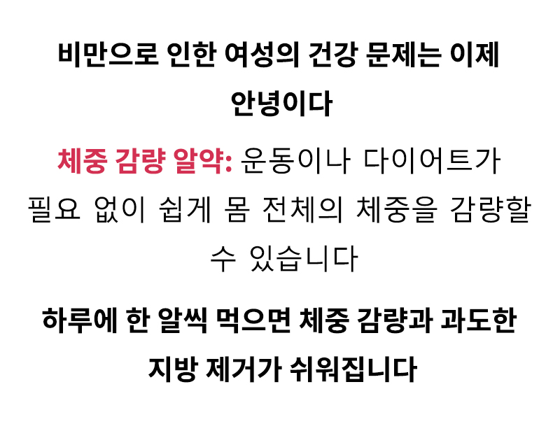 아기를 낳고 나서 뱃살을 뺄 수가 없었어요. 다이어트와 운동도 해봤지만 소용이 없었어요. 이 다이어트 약을 먹고 나서 살이 빠지고, 배와 허리둘레도 많이 줄어들었고, 수년간 앓았던 변비도 해결되었습니다. 정말 놀랐습니다.